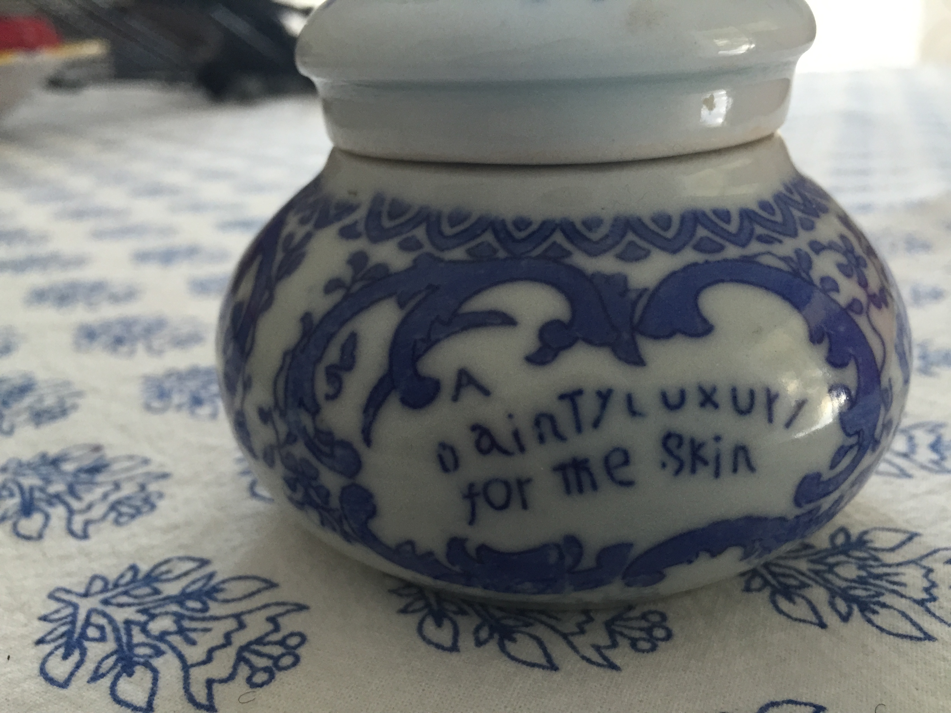 Was excited to find this little jar today as I have purchased potlids and bases from England online but never found one for cream manufactured in the United States. Mine looks the same as yours pictured except some of my lettering is clearer but the word Boston on the front of the jar doesn’t have the “n”. I enjoyed the history you shared. I’d love to know where the jars were manufactured. Early transferware and my favorite color blue!