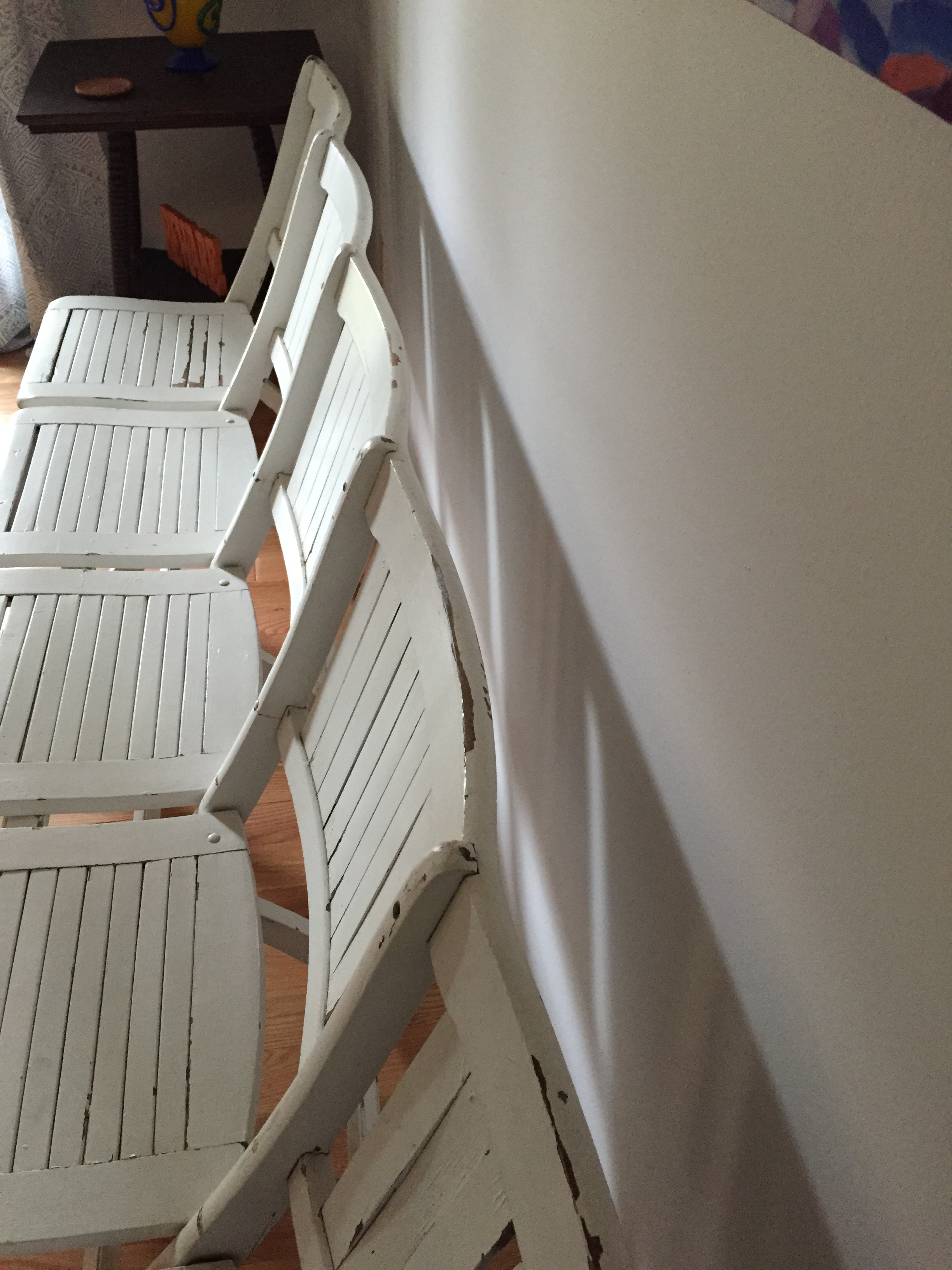 And it also folds flat against the wall. IMG_5986It’s very comfortable to sit on and has become one of our favorite pieces.