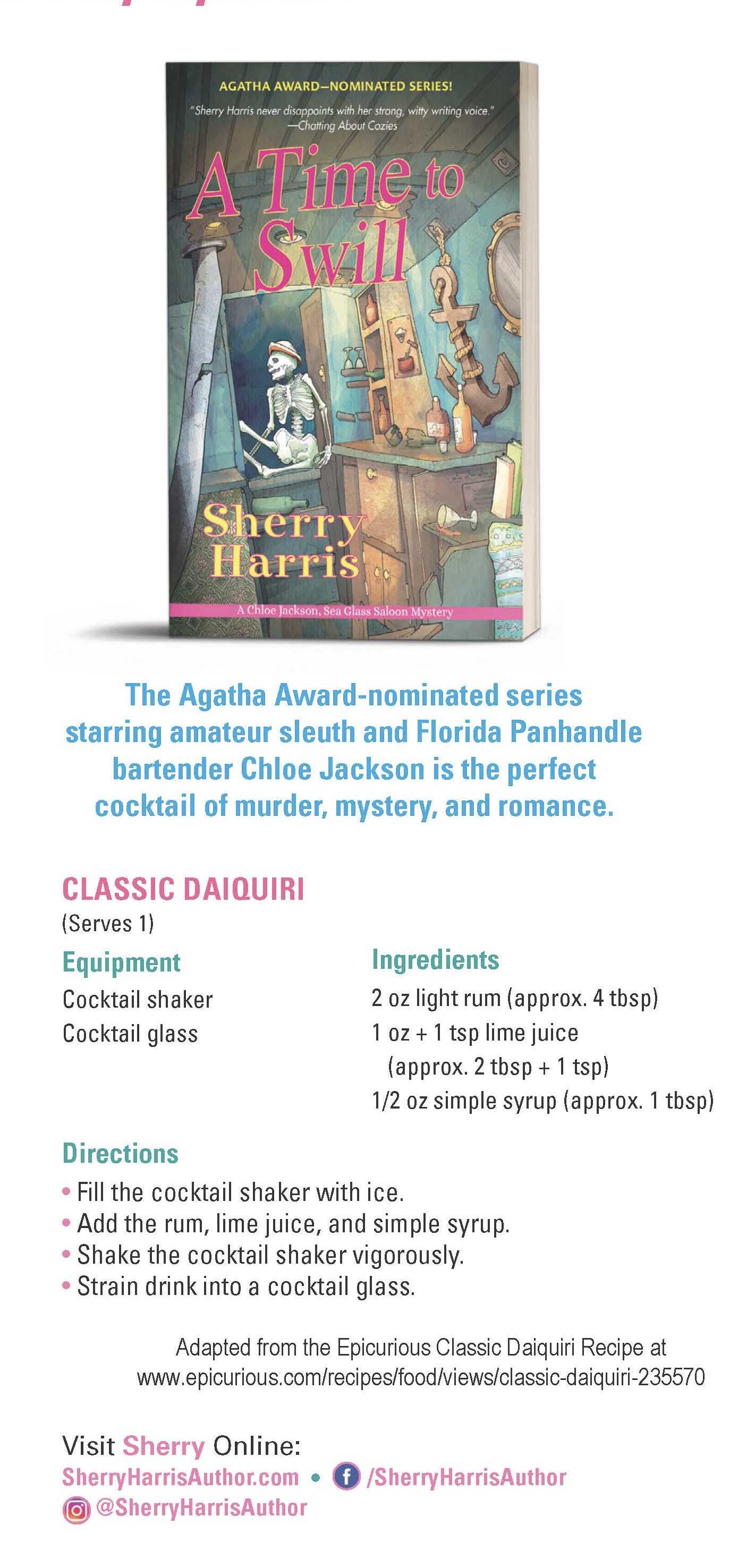 Here’s a recipe for a Classic Daiquiri that plays a part in A Time to Swill!